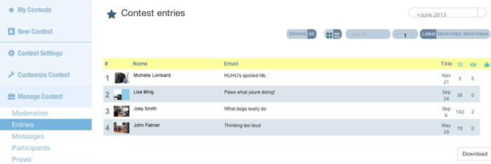 View all contest entries in a tile or list view format. Search or browse by the Latest, Most-Viewed, or Most-Voted.